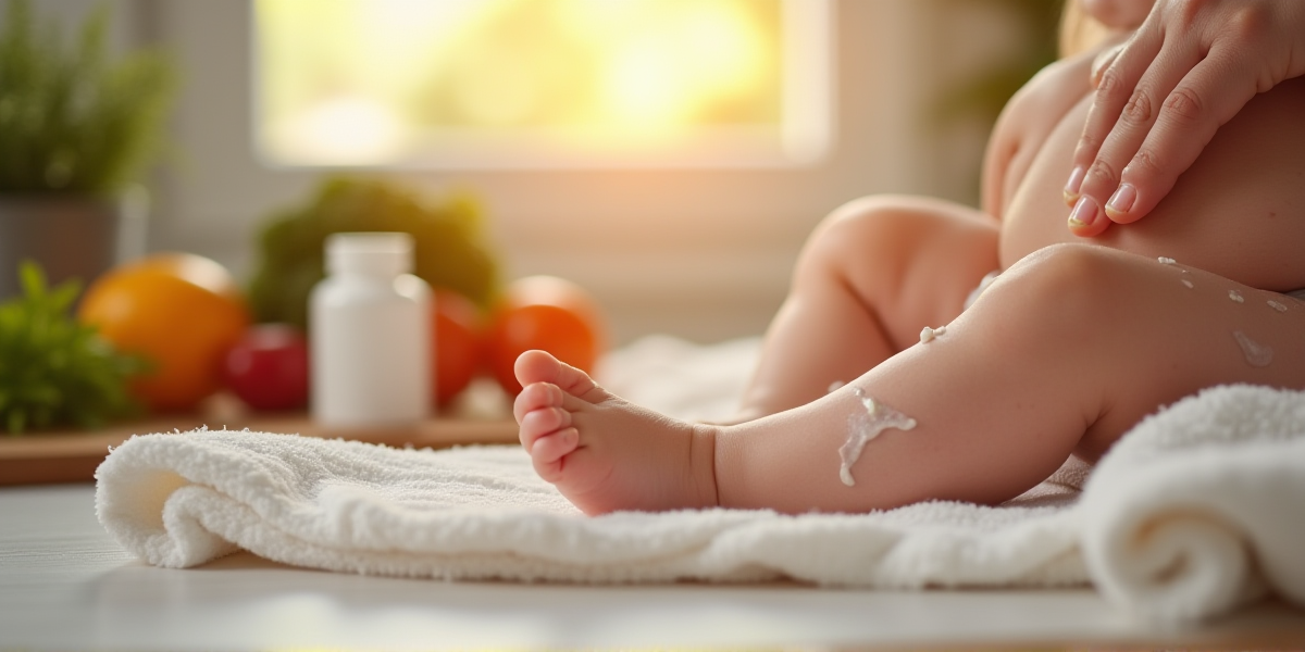 При атопии, включая дерматит, часто наблюдается оксидативный стресс — процесс, при котором клетки получают повреждения из-за избытка активных форм кислорода. Витамин Е помогает предотвратить эти повреждения, повышая эластичность кожи и уменьшая сухость. Это особенно важно для младенцев, чья кожа тонкая и еще не полностью сформирована.